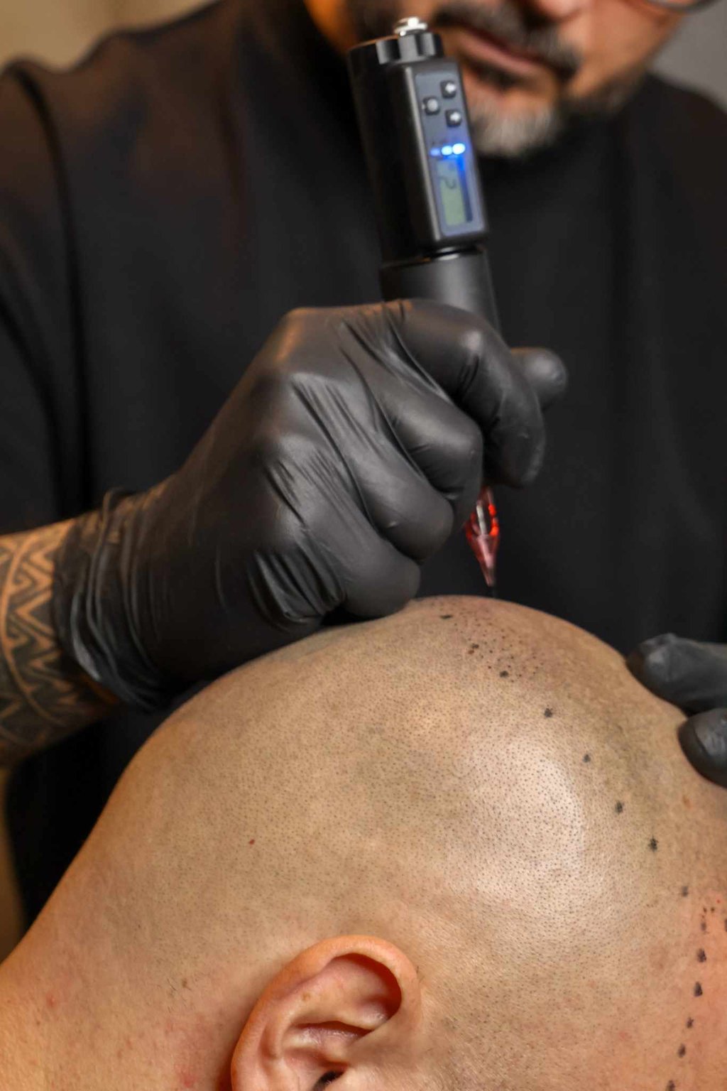 Cela dépend grandement de l'avancement de perte de cheveux. En moyenne, 2 à 3 séances sont nécessaires pour obtenir un résultat optimal. Cela permet d’ajuster la densité et l’intensité des pigments en fonction de vos attentes.