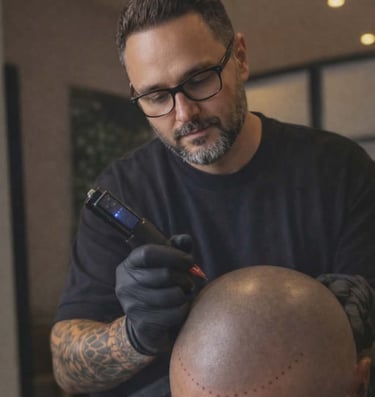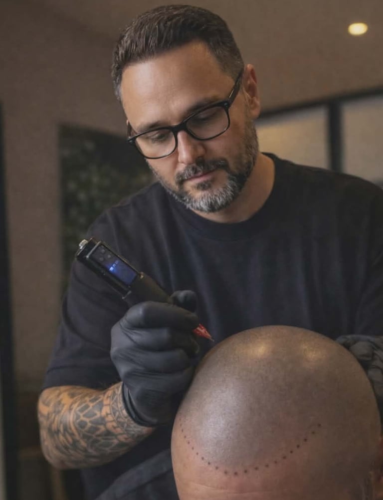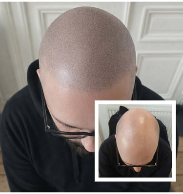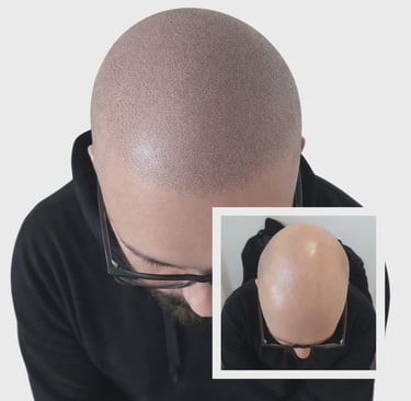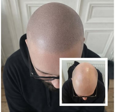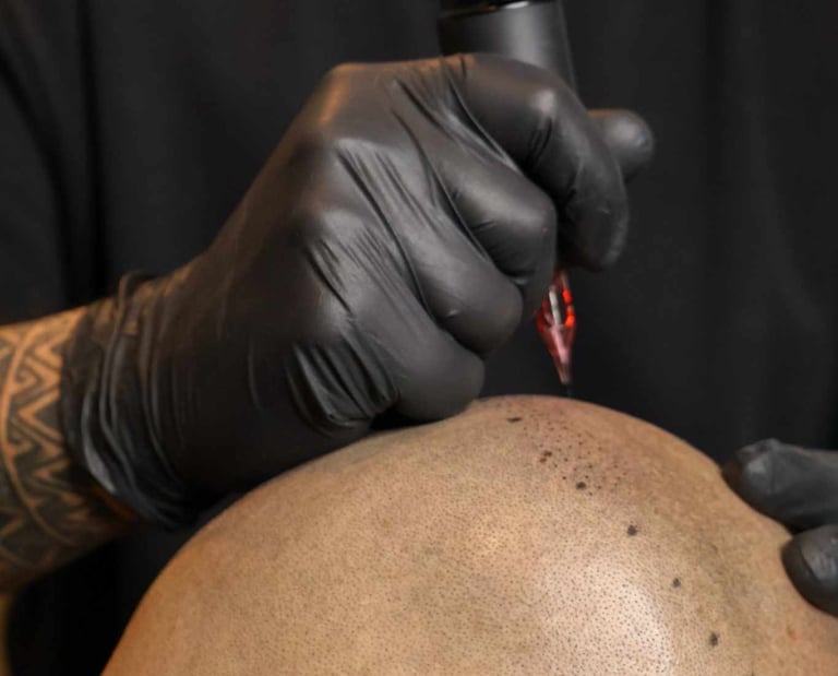 La micropigmentation est une technique de tatouage aux pigments naturels qui permet de dissimuler une chute de cheveux, qu'elle soit liée à une calvitie, une pelade, une alopécie, ou même une cicatrice au niveau du cuir chevelu.